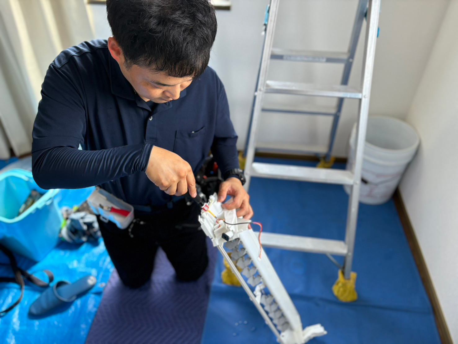 予約から作業完了までとても丁寧にご対応いただき、作業内容にも大変満足しています。 メッセージのやり取りではいつもレスが早く、スムーズに確認や連絡が取れました。 当日の作業では、作業スペースを丁寧に養生し、慣れた動きでさくさくとエアコンを完全分解して、パーツの汚れをとてもきれいに洗浄して頂きました。 作業中は要所要所で分解状況や汚れ具合、洗い上がりの様子を説明・点検させて下さり、安心できました。 アシスタントの方がご一緒でしたが、お二人のやり取りの雰囲気が良く、こちらも気持ちよく過ごせました。 作業後の片付けでは、使用した部屋の壁やバスルームもきれい拭き上げて下さっていて、作業前よりキレイかも…(笑) 取れかけていたカーテンフックも締めて下さり、細やかな気遣いに感謝しています。 カビ臭い匂いも出なくなり、とても快適です。またお願いしたいと思います。